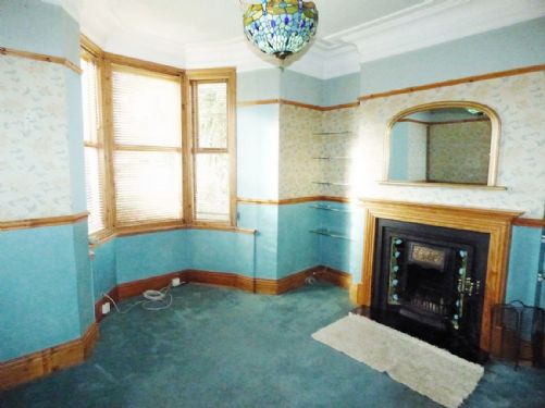 A good sized room with high ceiling, ornate coving, ceiling rose, picture rail, dado rail and deep skirtings. Pine fire surround with cast iron inset and period tiling. Central heating radiator. Double glazed bay window to the front elevation.