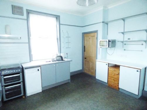 A large dining kitchen having base units with heat resistant work surfaces and inset stainless steel sink unit. Original storage cupboards built in to the alcove. Plumbing for a dishwasher. Gas cooker point. Feature Inglenook style fireplace with stone mantle. Light dιcor with picture rail and cornice to ceiling. Sealed unit double glazed window to the rear. Pine door leading to:-