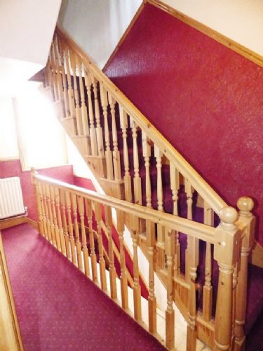 Pine spindled balustrade. Central heating radiator. Upvc double glazed window to the rear. elevation. Stairs to the second floor accommodation.